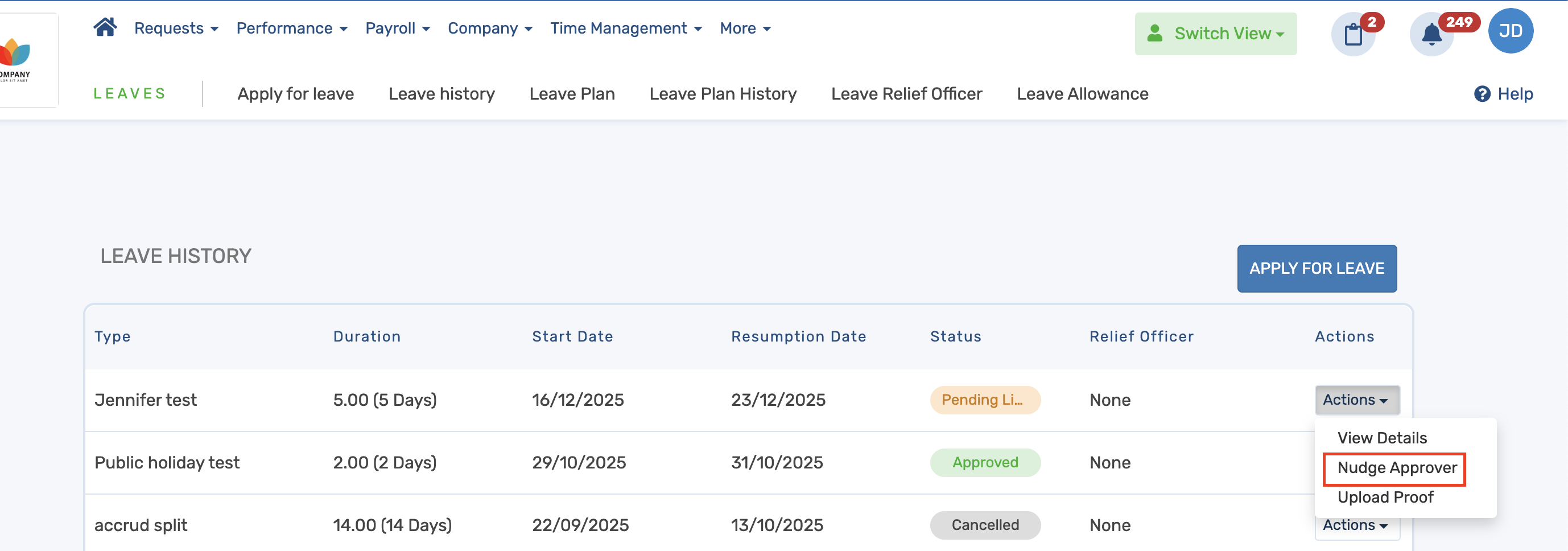 This release introduces a Nudge Approver feature that allows employees to send reminders to their approvers directly from the system when leave requests are pending. This enhancement improves communication between employees and approvers, reduces delays in leave approvals, and eliminates the need for employees to send repeated manual reminders outside the platform.